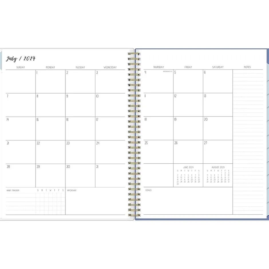 Ivory Paper Co for Blue Sky planners offer reading list, bucket list, and gratitude pages. A valuable tool to organize your days, the Julieanne large academic planner helps you set goals, track progress, and make the most of your time.