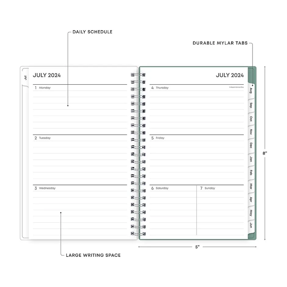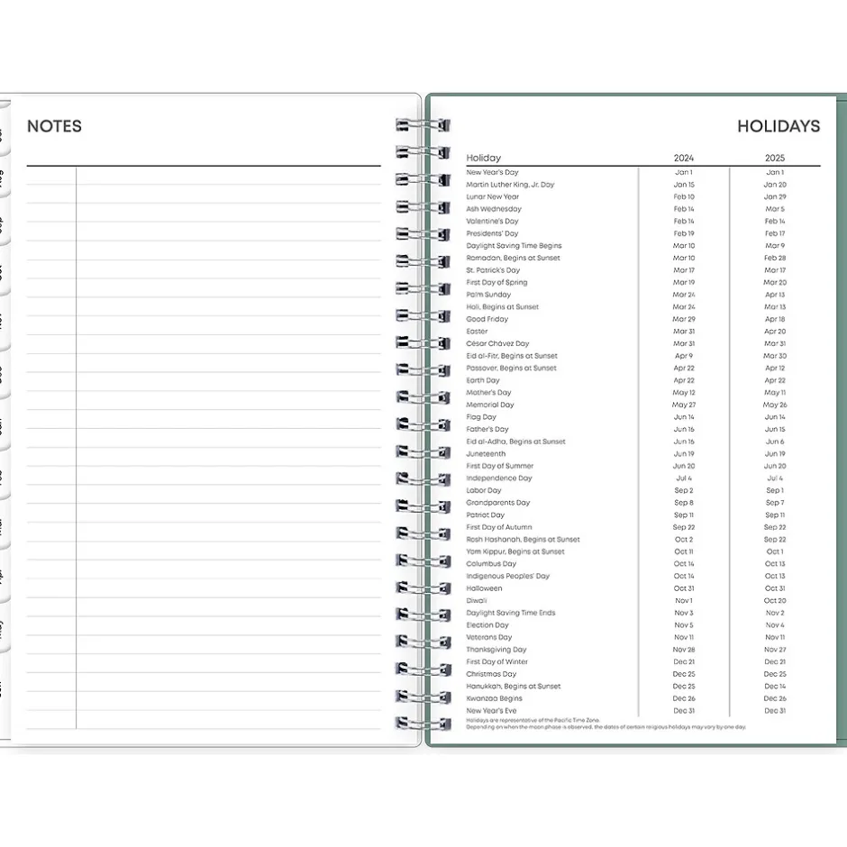 - Features two-page weekly and monthly spreads with space for notes and quick reference calendars