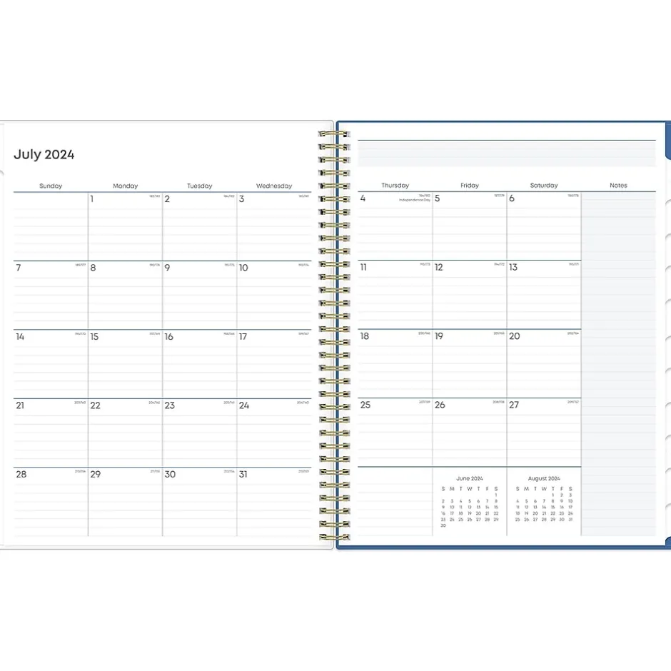 - Offers one month per two pages and one week per two pages, with space for notes and quick reference calendars