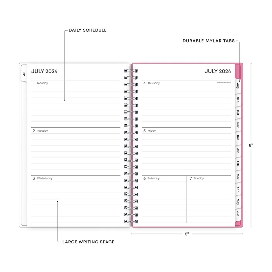 Blue Sky 2024-2025 Roosevelt 5" x 8" Academic Weekly & Monthly Planner, Plastic Cover, Pink/Green (128692-A25) Outlet