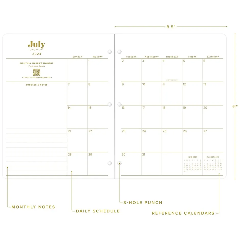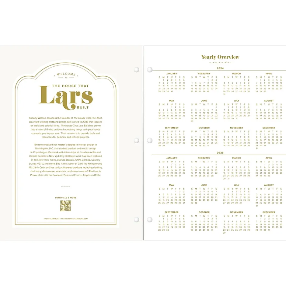 - Notes pages, reference calendars, contacts, goals, holidays, and important dates