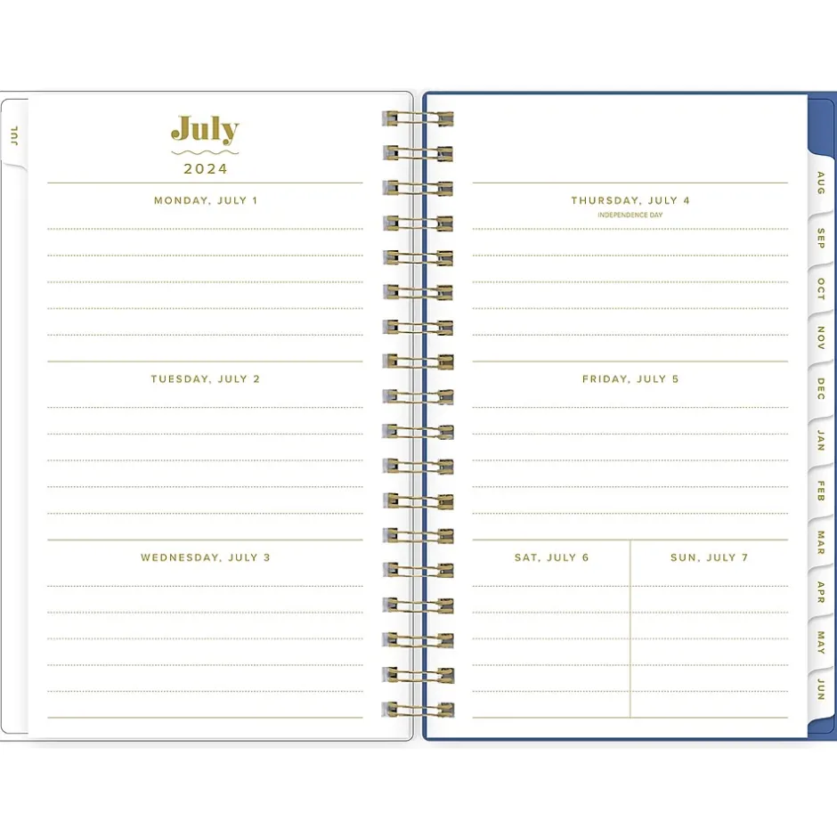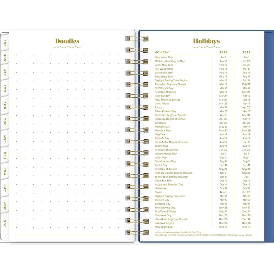 - Weekly and monthly planner covers a 12-month academic date range from July 2024 to June 2025