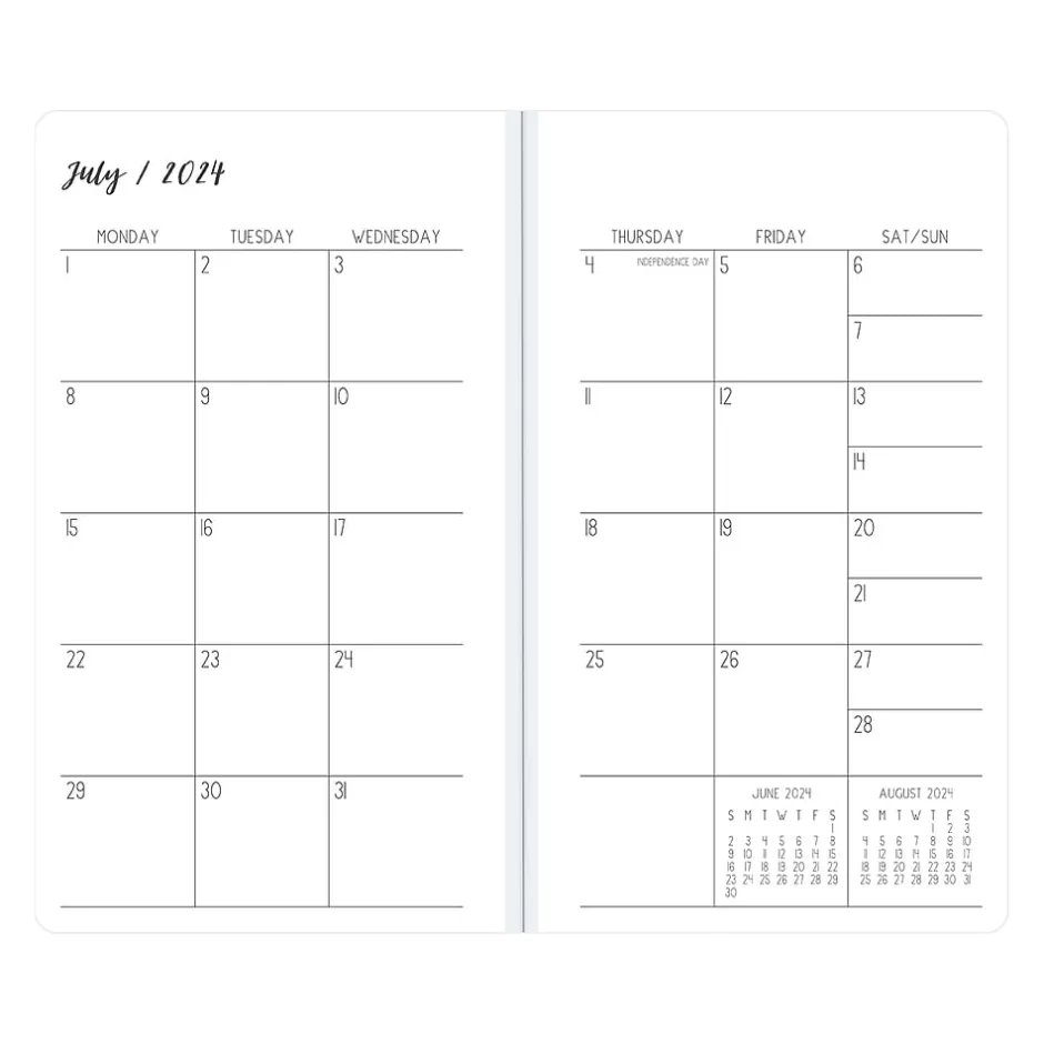 Ivory Paper Co for Blue Sky planner offers reading list, bucket list, and gratitude pages. The Daviana monthly pocket planner has a stapled spine for snag-free stowing in your pocket or bag. Enjoy 24 months of monthly views, extra notes pages, and pages for your goals, contacts, and important dates.
