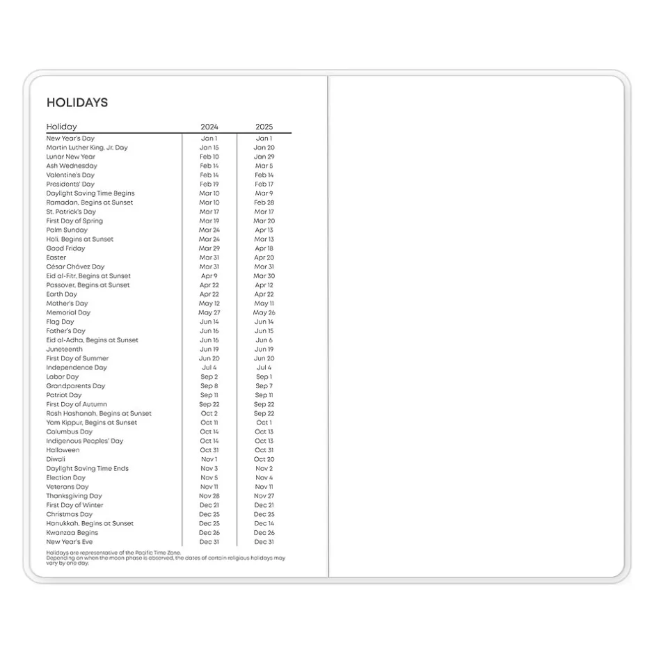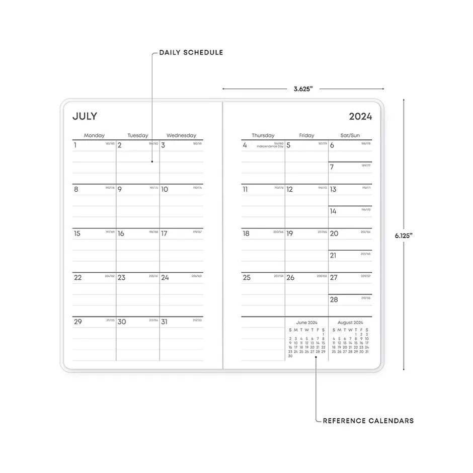 - Offers one month per two pages with reference calendars