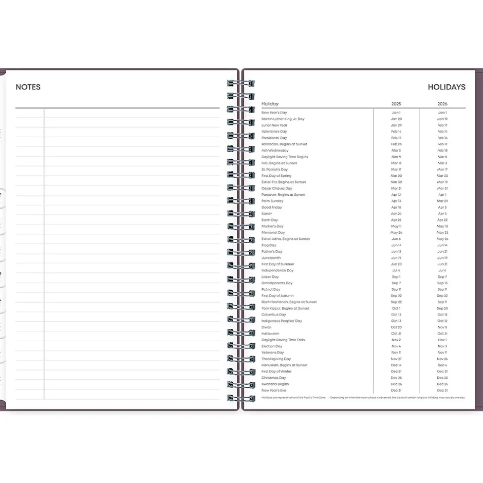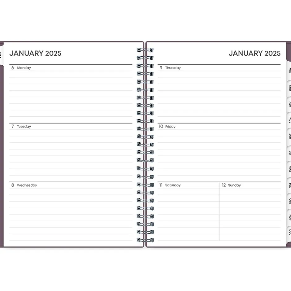 The best of both worlds: a planner with a built-in notebook. This all-in-one planner includes 30 lined pages for notes, weekly pages, and tabbed monthly views. Track dates, goals, and feedback in one convenient place. This Blue Sky planner offers plenty of room for your schedule and a sleek, professional look.
