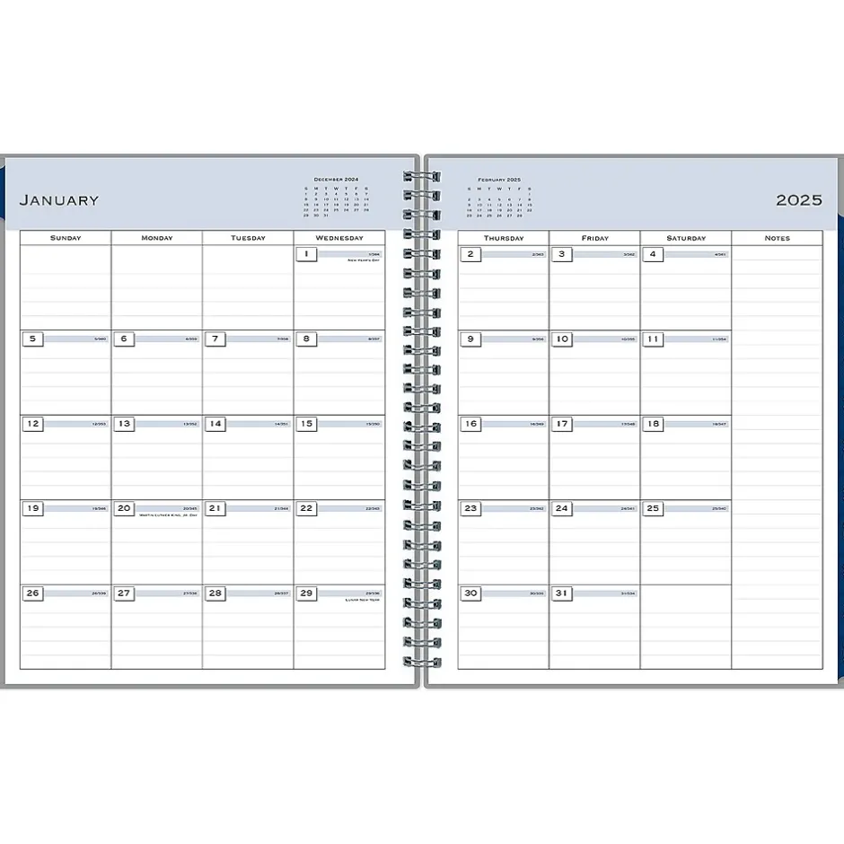 - Offers one month per two pages, with space for notes and quick reference calendars