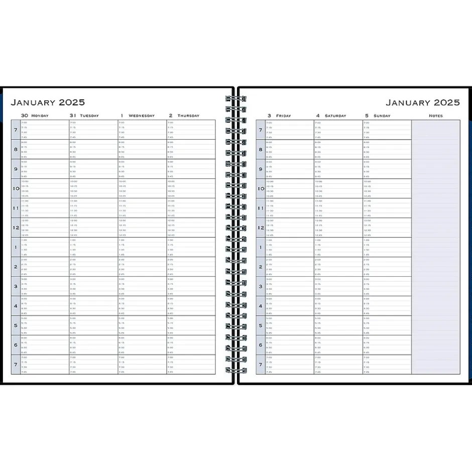 - Weekly and monthly appointment book covers 12 months from January 2025 to December 2025