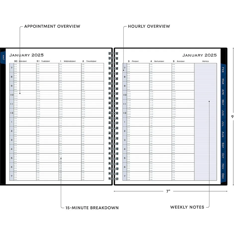 Block out time for meetings with a professional appointment book. Perfect for office schedules or busy individuals, this 2025 appointment book from Blue Sky lets you plan every day of the year in 15-minute increments. The vertical weekly views start at 7:00 a.m. and end at 9:45 p.m.