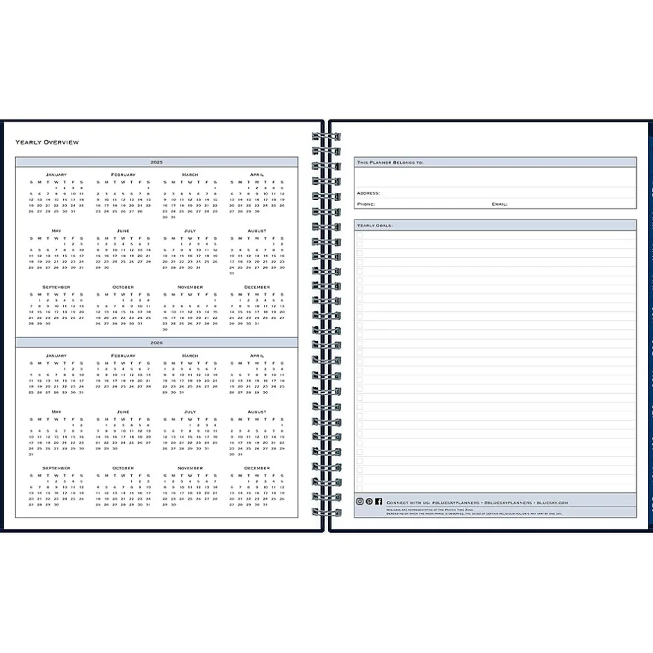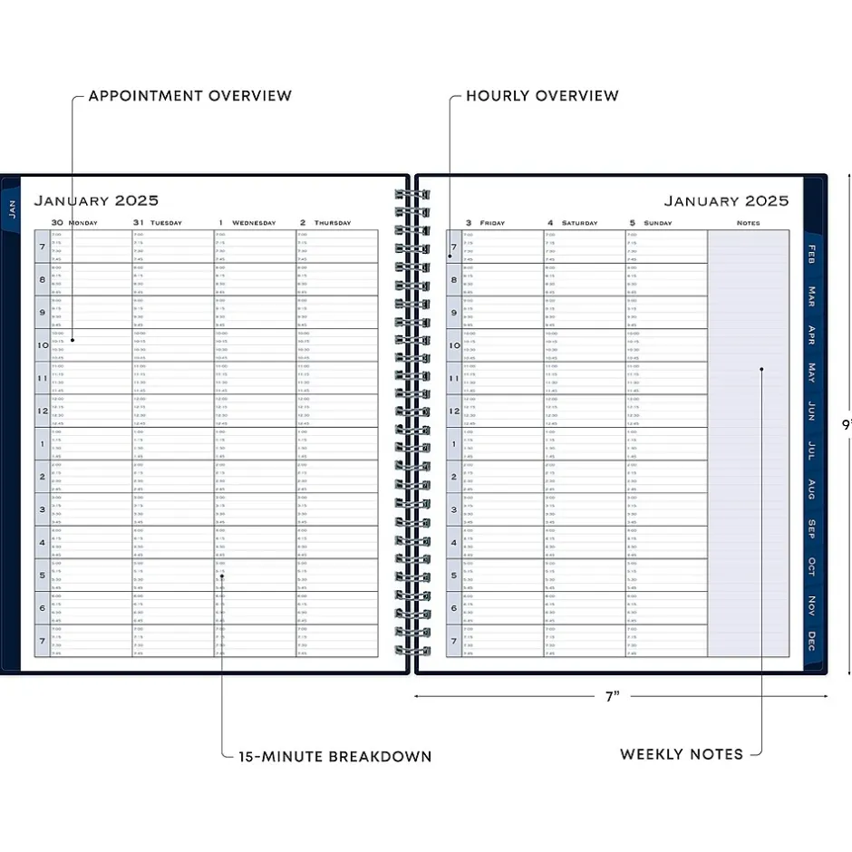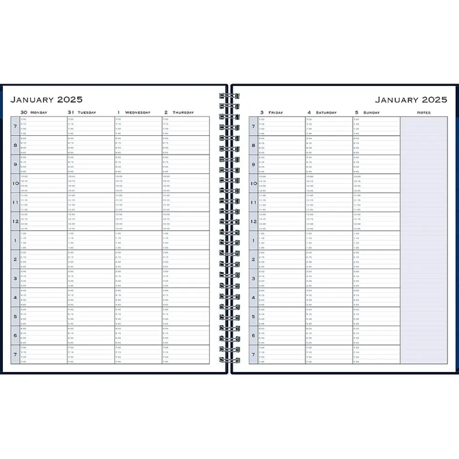 Block out time for meetings with a professional appointment book from Blue Sky. Perfect for office schedules or busy individuals, this 2025 appointment book lets you plan every day of the year in 15-minute increments. Vertical weekly views start at 7:00 a.m. and end at 9:45 p.m.