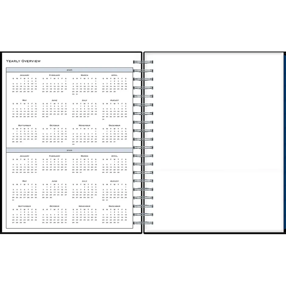 - Daily pages with hourly slots from 7:00 a.m. to 7:00 p.m. with plenty of room for notes (weekends appear on the same page); monthly spreads feature ruled daily blocks, space for notes, and quick reference calendars