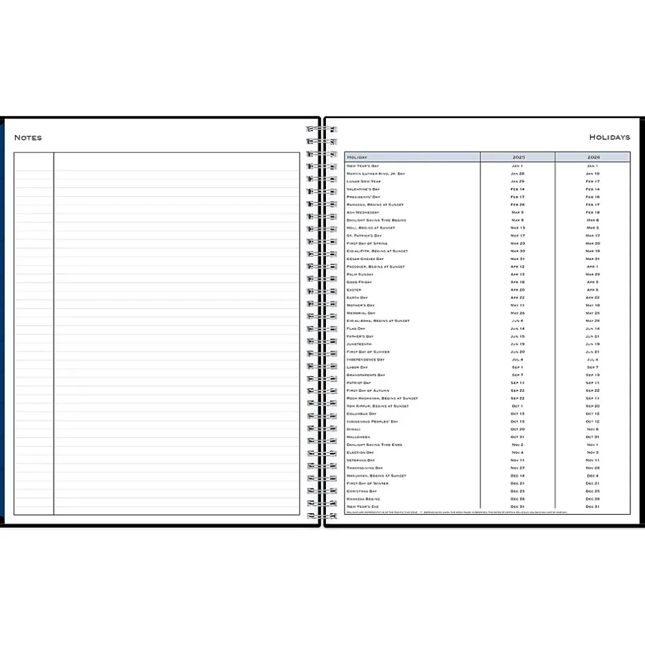 - One week per view and one month per view, with space for notes and quick reference calendars