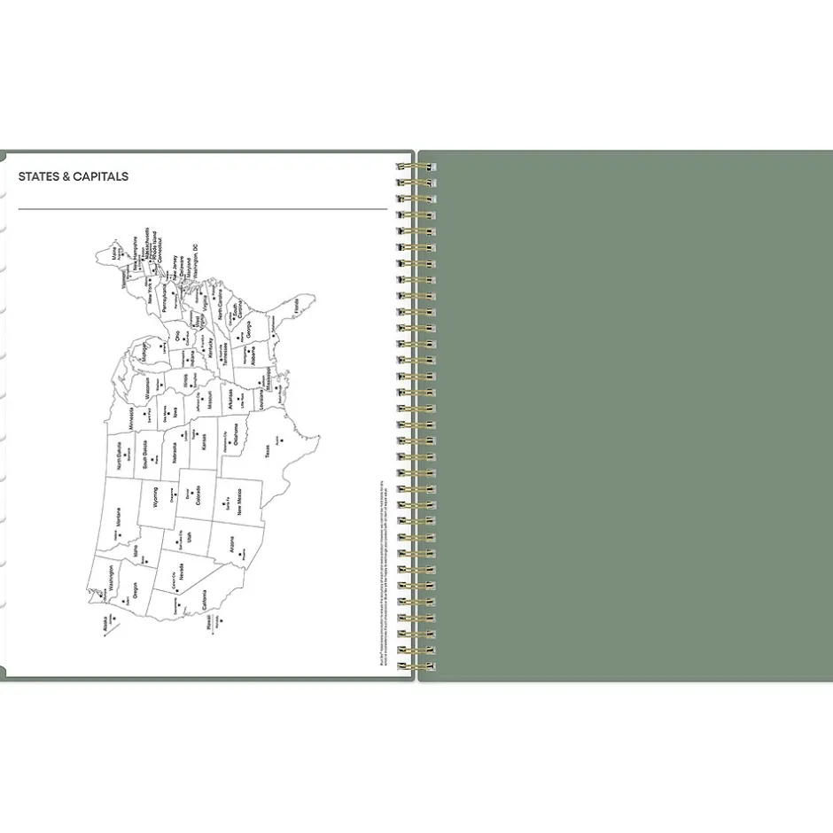 - Offers one week per two pages and one month per two pages, with space for notes and quick reference calendars