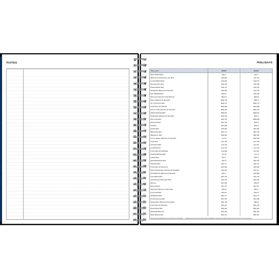 - Offers one month per two pages, with space for notes and quick reference calendars
