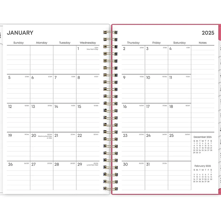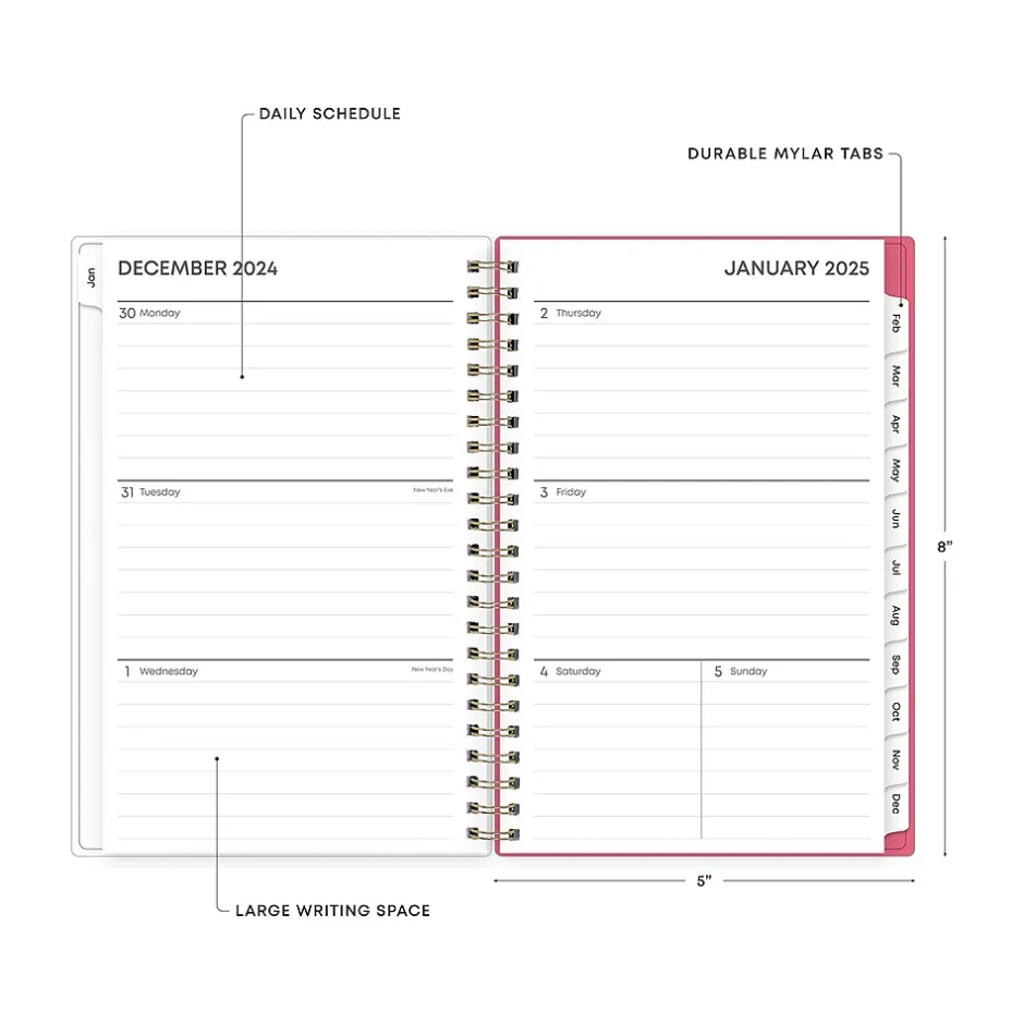 A simple planner for busy schedules. Organize your tasks and time with the Amalia weekly and monthly 2025 planner from Blue Sky. Use the ruled weekly layouts, tabbed monthly views, and notes pages to effectively manage your schedule and achieve your goals.