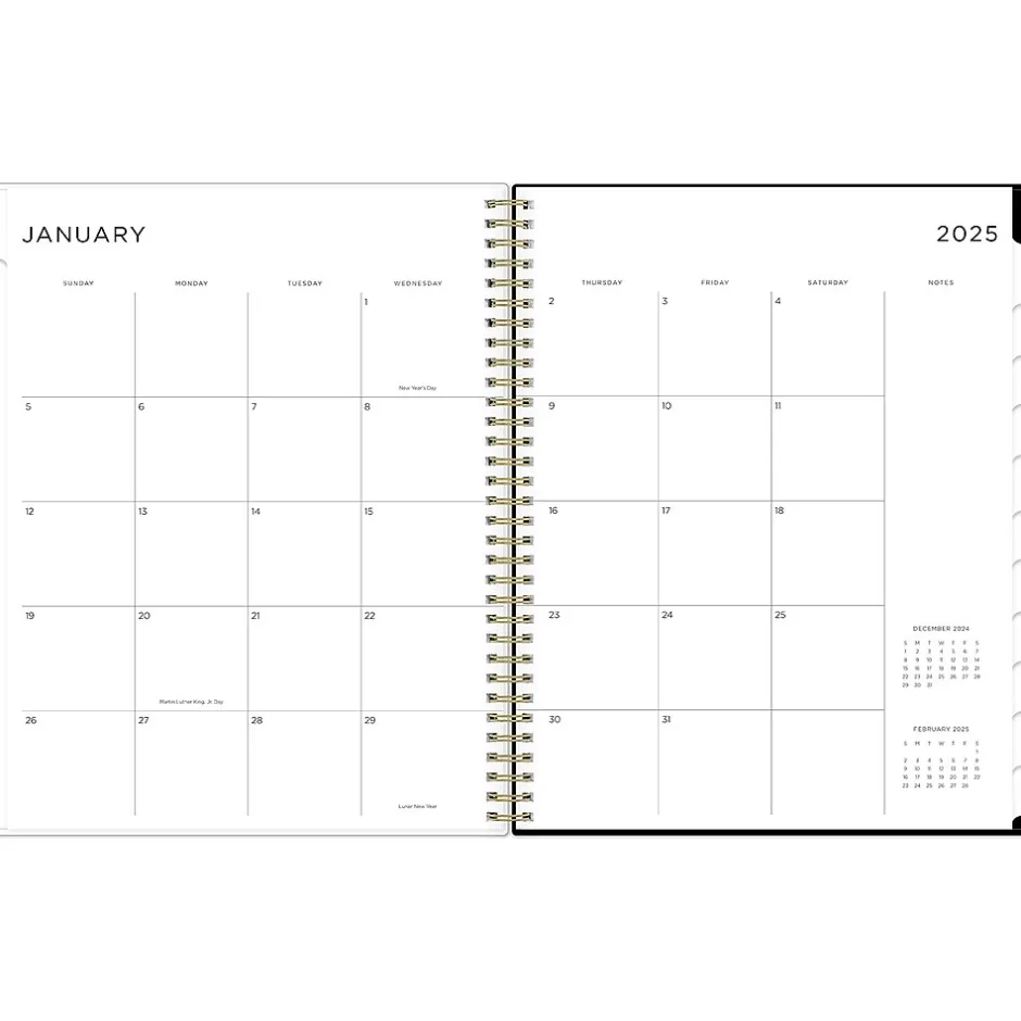 - Features two-page weekly and monthly spreads, with space for notes and quick reference calendars