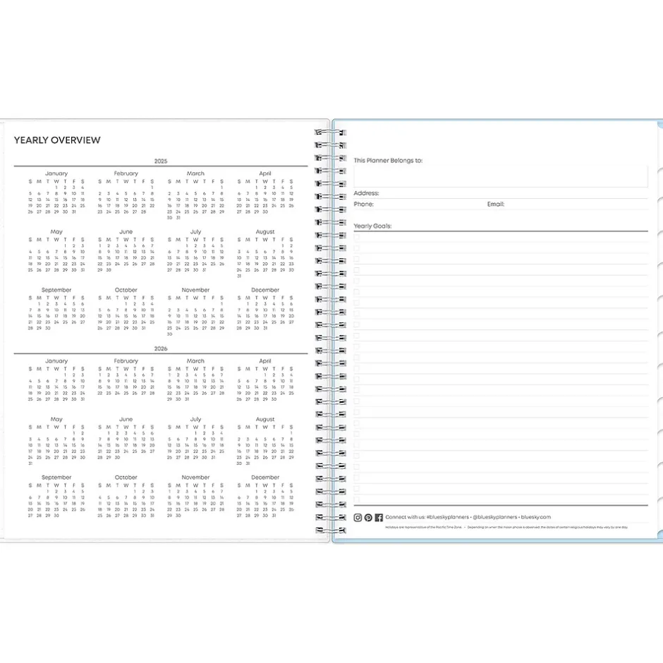 Organize tasks and time with the 2025 Blue Sky Blue Block planner that includes a storage pocket. Use lined weekly layouts, tabbed monthly views, and notes pages to manage your schedule and achieve your goals.