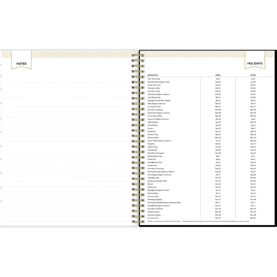 - Features two-page weekly spreads, with space for notes and quick reference calendars