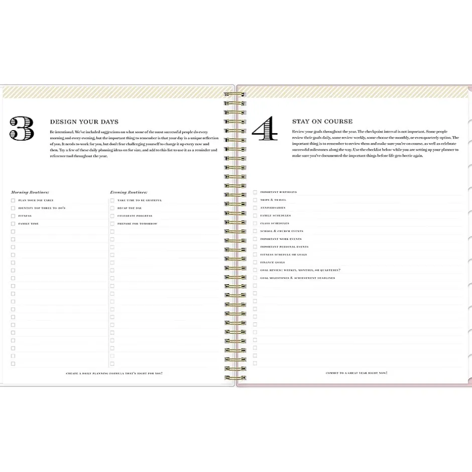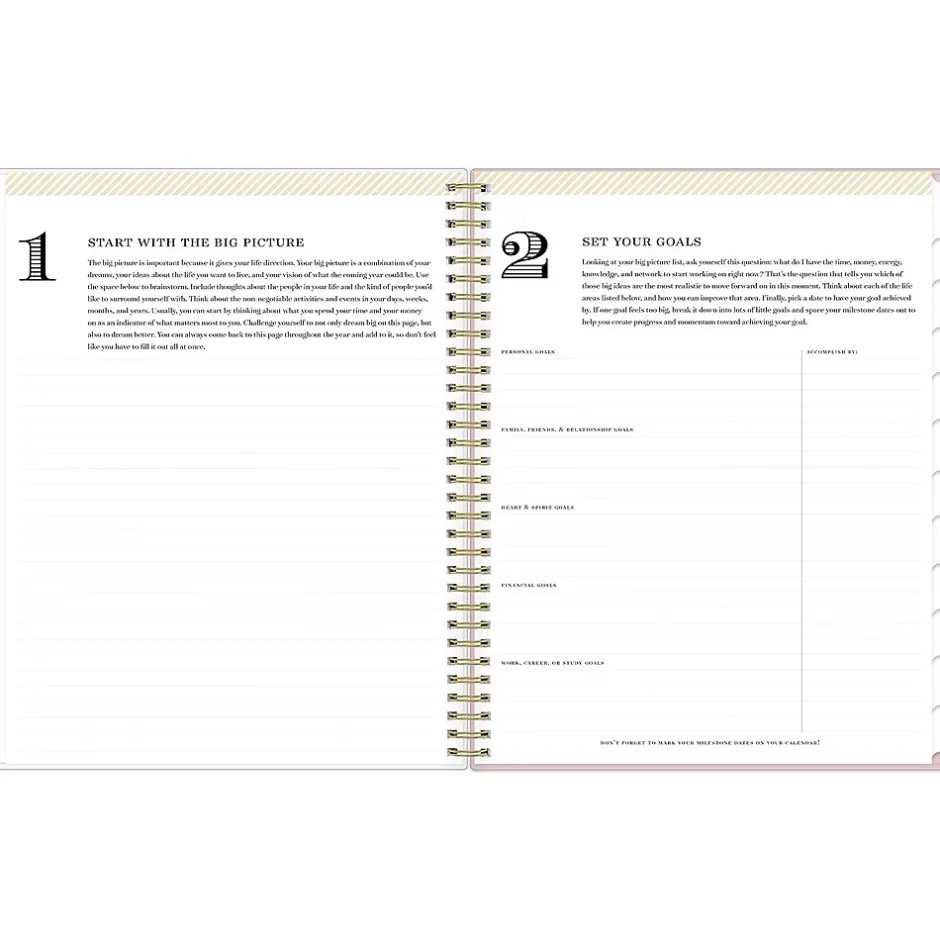 Day Designer for Blue Sky offers an elegant place to plan your year. With a customizable clear pocket cover, goal-setting worksheets, and outstanding weekly layouts, the 2025 Breeze planner from Day Designer for Blue Sky helps you prioritize tasks and stay organized. It includes gold-tone foil stickers and a storage pocket for a well-designed year.