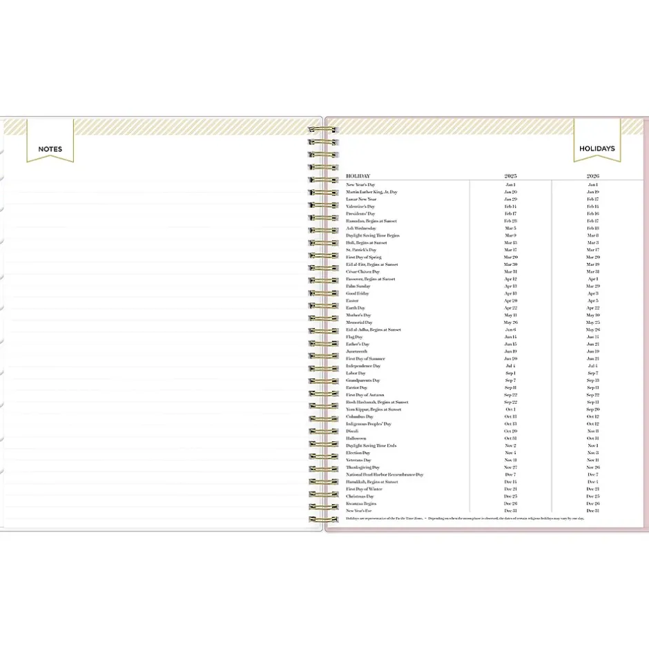- Features two-page weekly spreads, with space for notes and quick reference calendars
