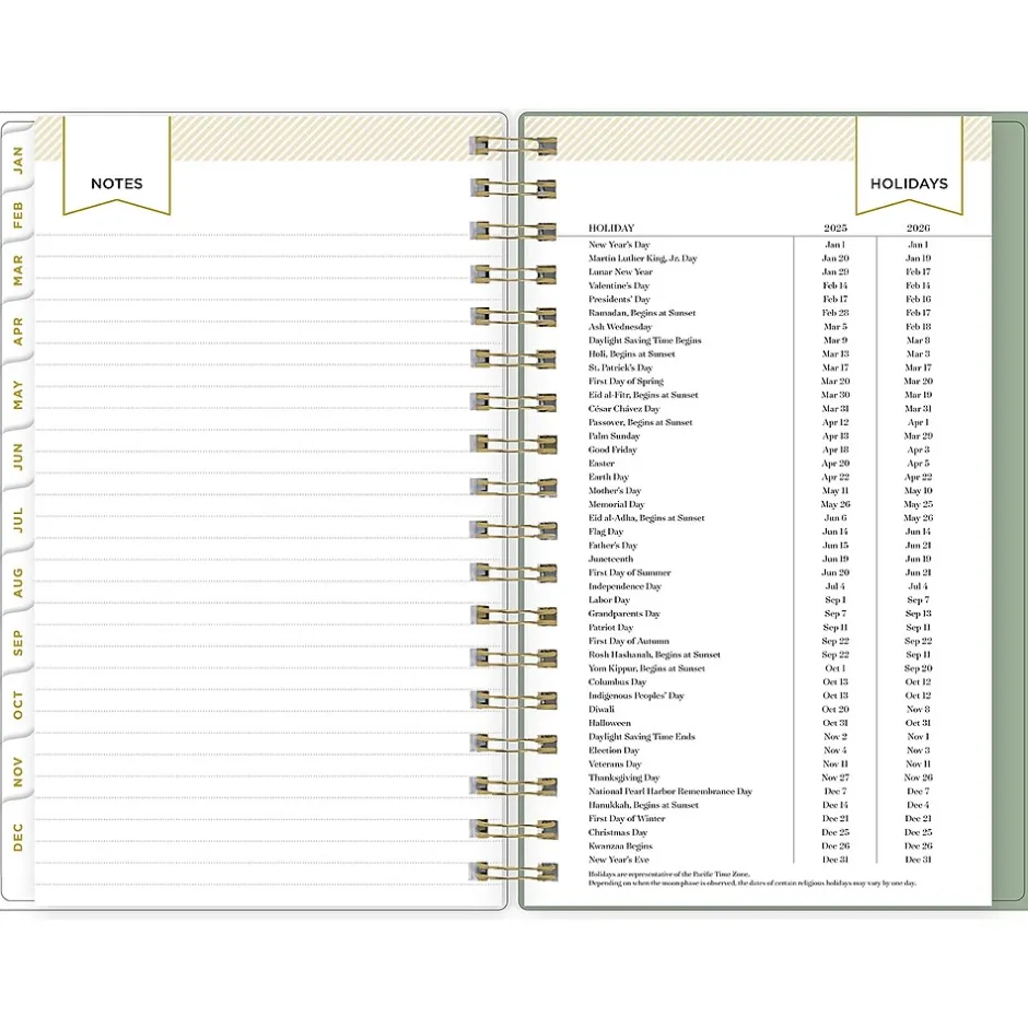 - Features two-page weekly and monthly spreads, with space for notes and quick reference calendars