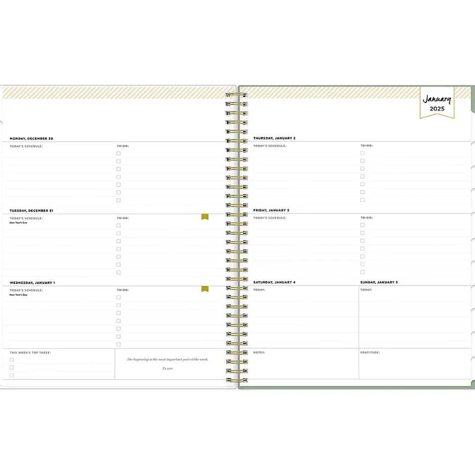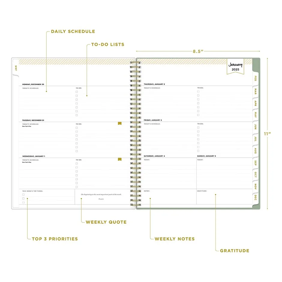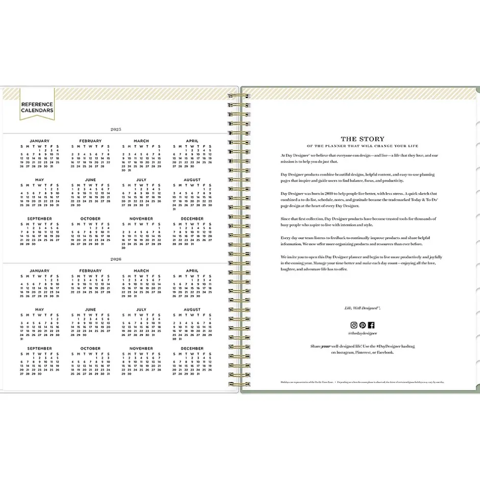 Day Designer for Blue Sky offers an elegant place to plan your year. With a customizable clear pocket cover, goal-setting worksheets, and outstanding weekly layouts, the 2025 Felicity planner from Day Designer for Blue Sky helps you prioritize tasks and stay organized. It includes gold-tone foil stickers and a storage pocket for a well-designed year.