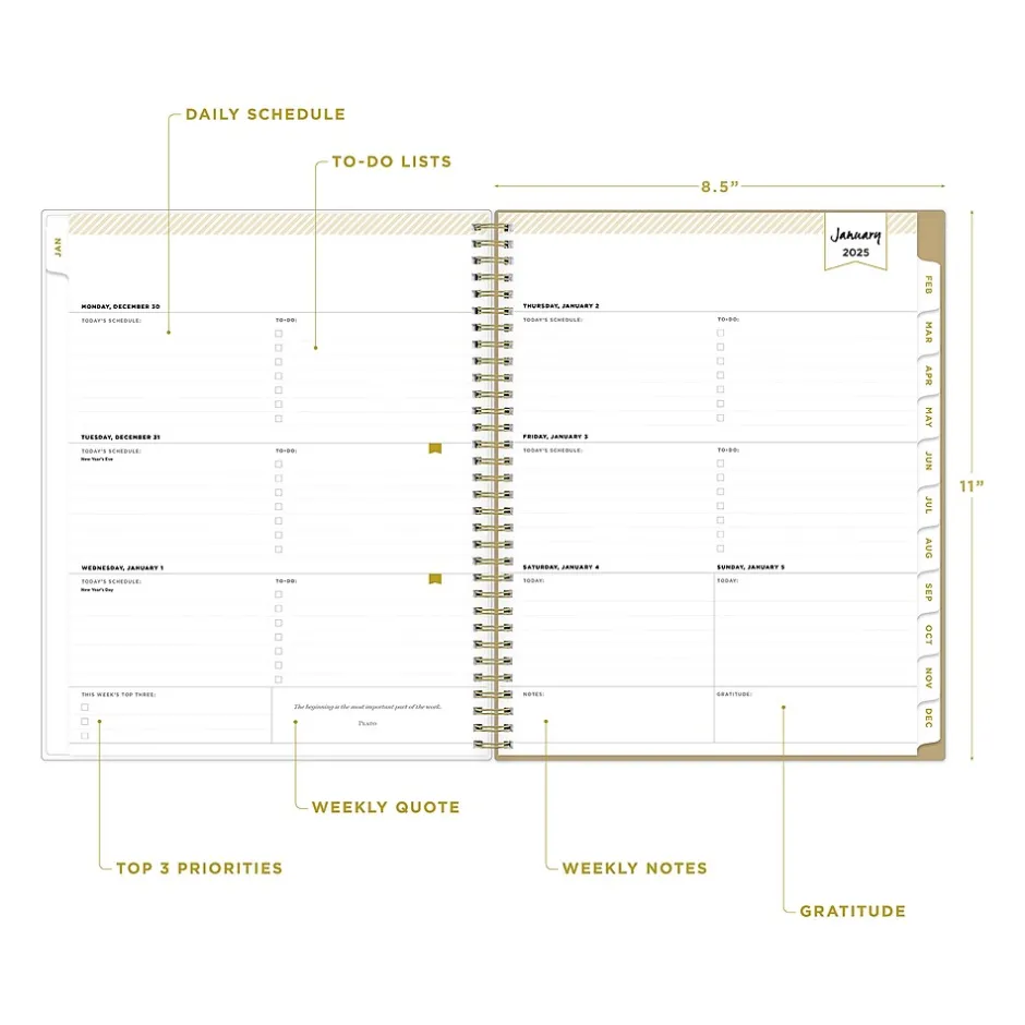 Blue Sky 2025 Day Designer Gold Spotty 8.5" x 11" Weekly Planner, Plastic Cover, Gold/White (148132) Best