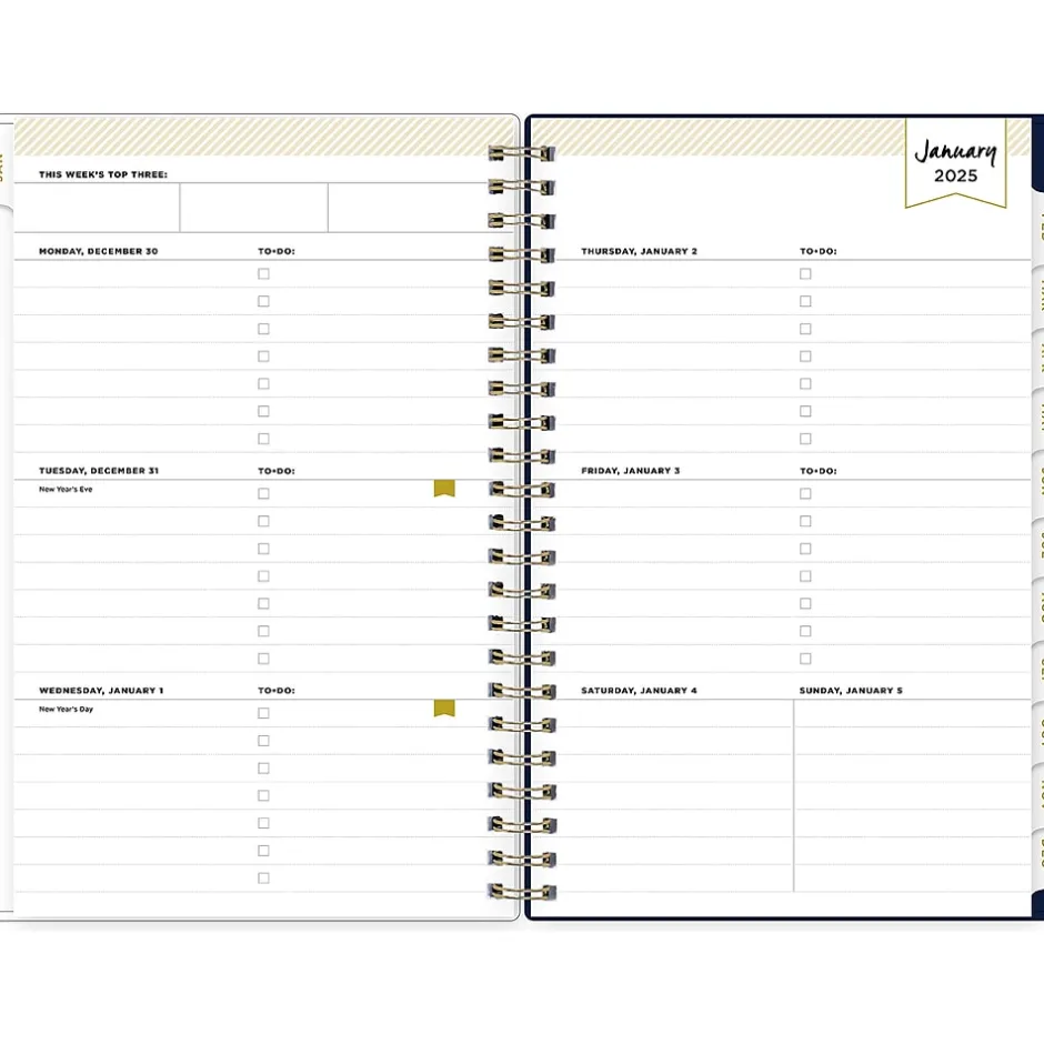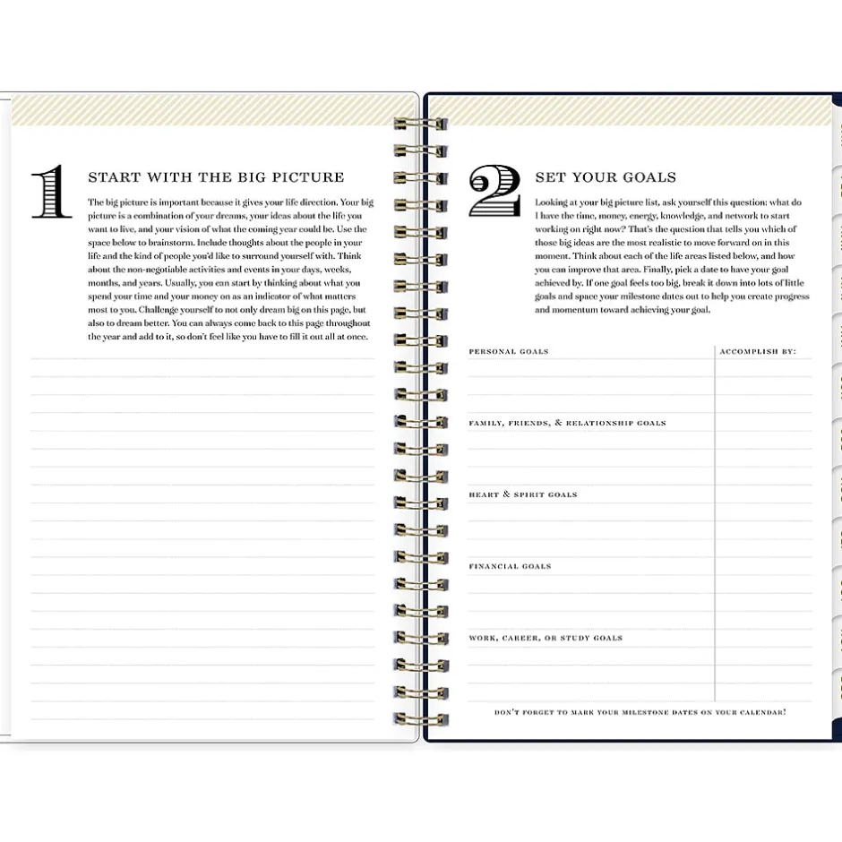Day Designer for Blue Sky offers an elegant place to plan your year. Organize to-do lists, write notes, and use the four-step planning process to set goals in 2025 with this Meadow planner. Enjoy gold-tone foil stickers, high-quality white paper, and a durable storage folder that withstands daily use.