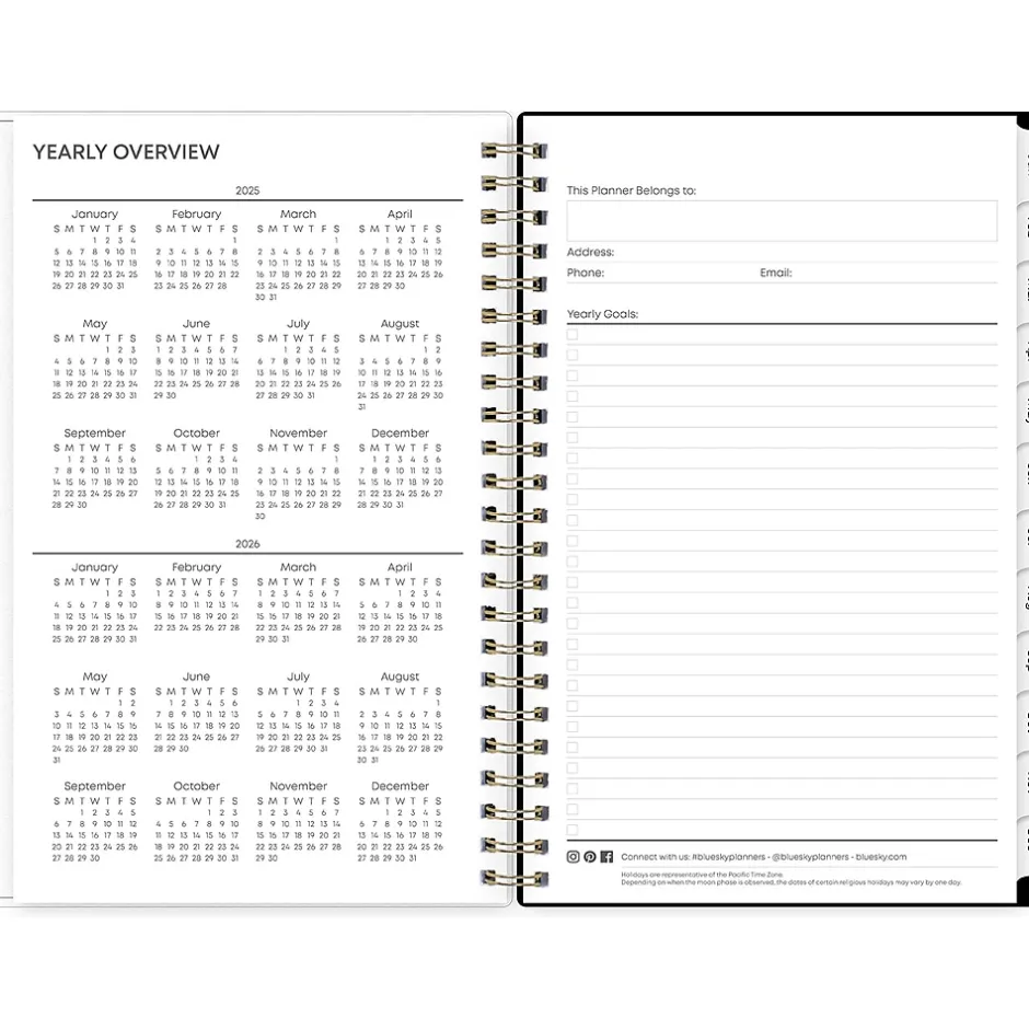 A simple planner for busy schedules. Organize tasks and time with the 2025 Deelie weekly and monthly planner from Blue Sky. It features ruled weekly layouts, tabbed monthly views, and notes pages to help you manage your schedule and achieve your goals.