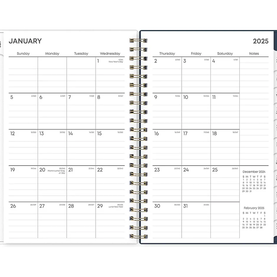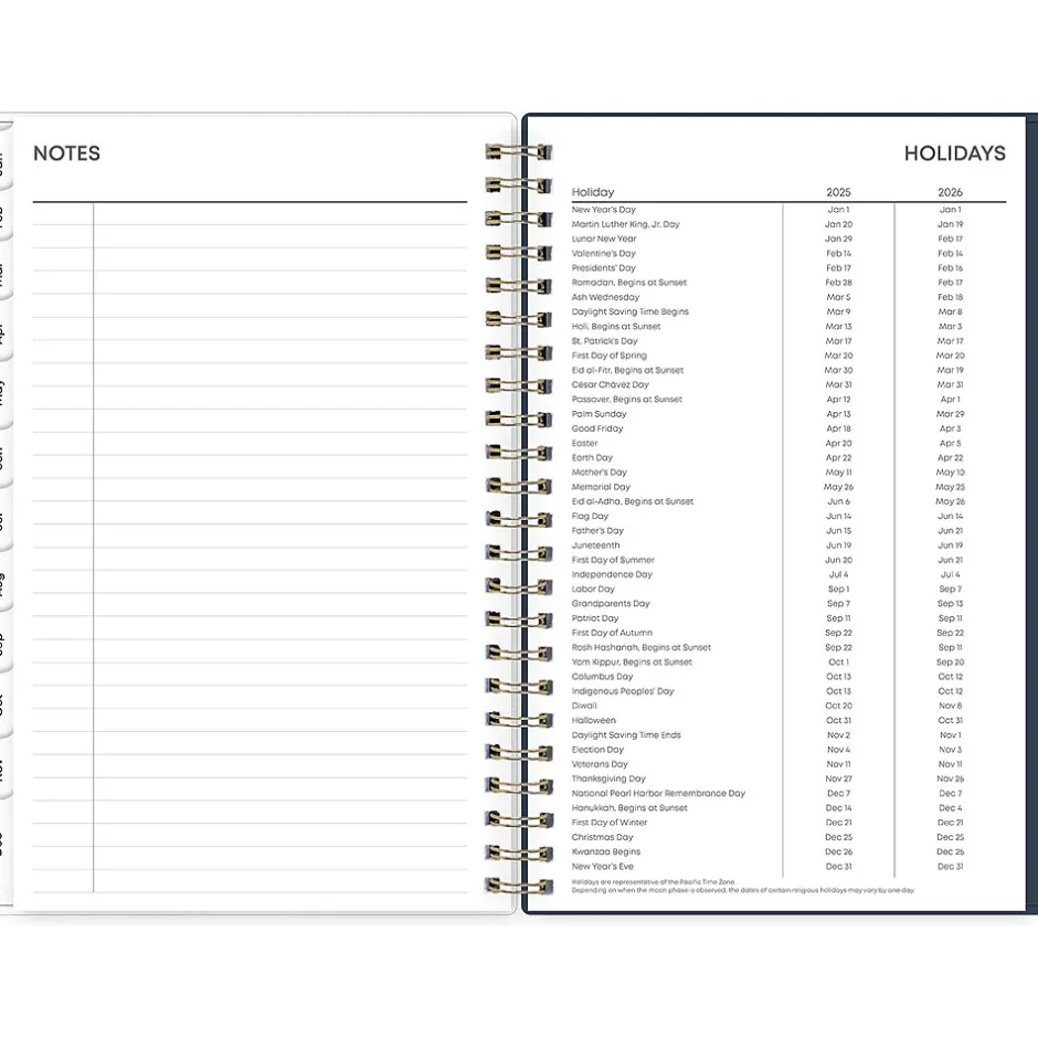 - Features two-page weekly and monthly spreads, with space for notes and quick reference calendars