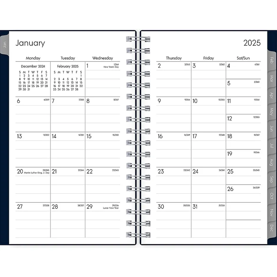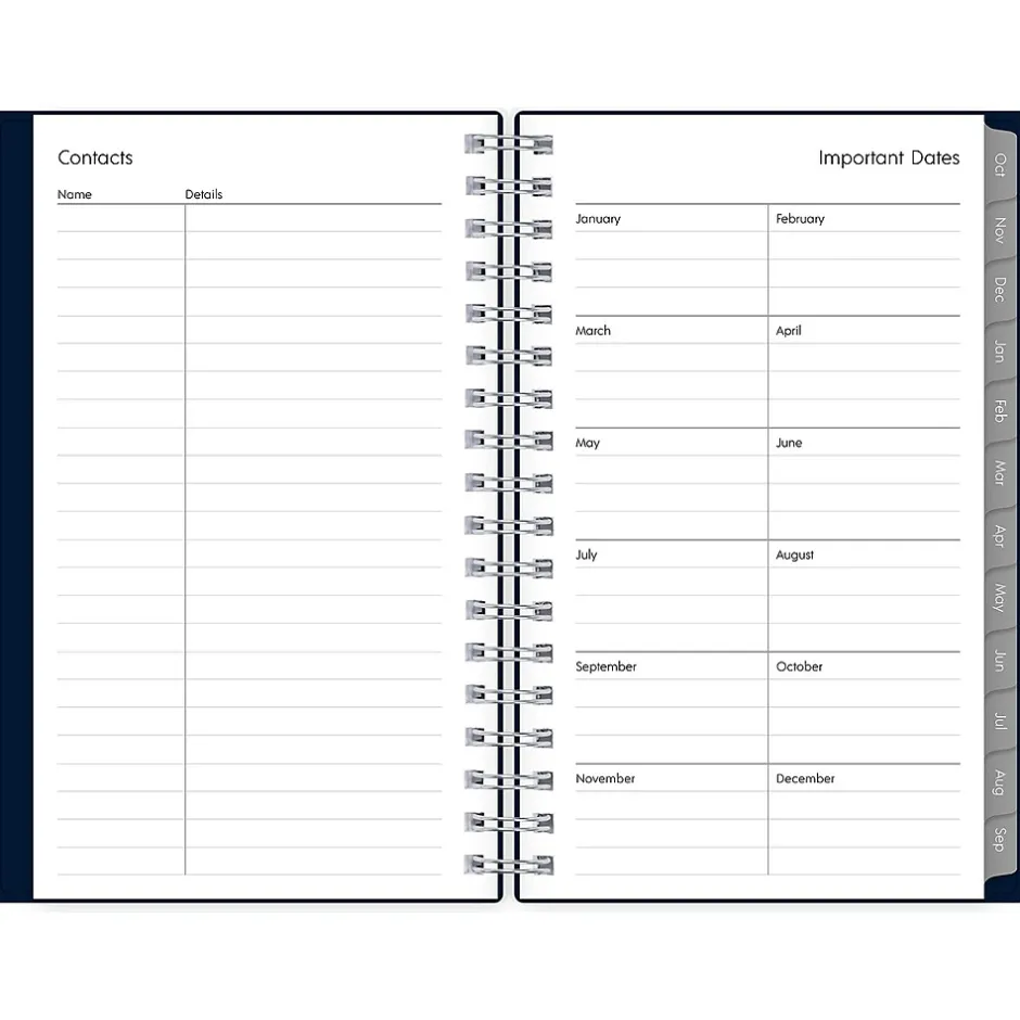 The 2025 Blue Sky Enterprise pocket planner has ruled weekly pages, tabbed monthly views, and notes pages. Use pages for your notes, goals, contacts, and important dates to stay organized.