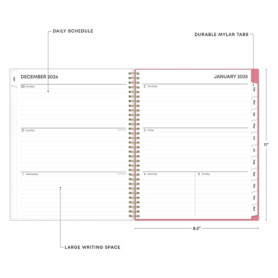 A simple planner for busy schedules. Organize tasks and time with the Fly By weekly and monthly 2025 planner from Blue Sky that includes a storage pocket. Use the weekly layouts, tabbed monthly views, and notes pages to effectively manage your schedule and achieve your goals.