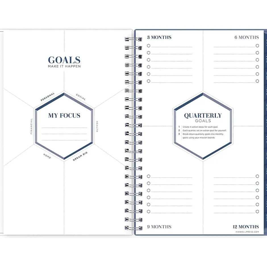 Achieve your goals with inkWELL Press for Blue Sky productivity planners, designed by time management expert Tanya Dalton. This Chevy Fog 2025 planner includes the inkWELL Press flexible weekly layouts with tabbed monthly views and notes pages after every month. Use the goal-setting worksheets, monthly mission boards, and habit trackers to track your progress throughout the year. Includes stickers and a paper storage pocket.