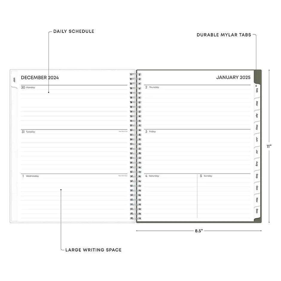 Organize tasks and time with the 2025 Blue Sky Joey Floral planner that includes a storage pocket. Use ruled weekly layouts, tabbed monthly views, and notes pages to manage your schedule and achieve your goals.