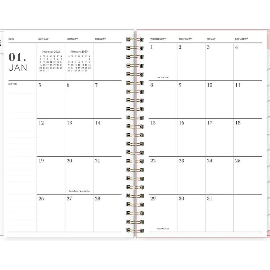 Best for time-blocking, this vertical planner lets you plan chronologically. Organize tasks and time with the 2025 Julissa planner from Blue Sky. It features vertical weekly layouts, tabbed monthly views, and notes pages to help you manage your schedule and achieve your goals.