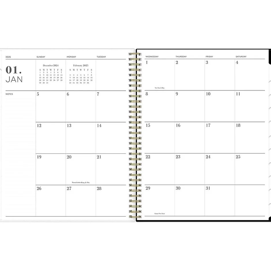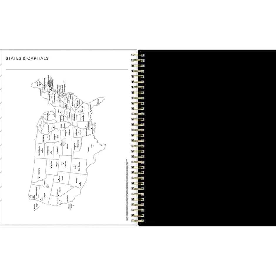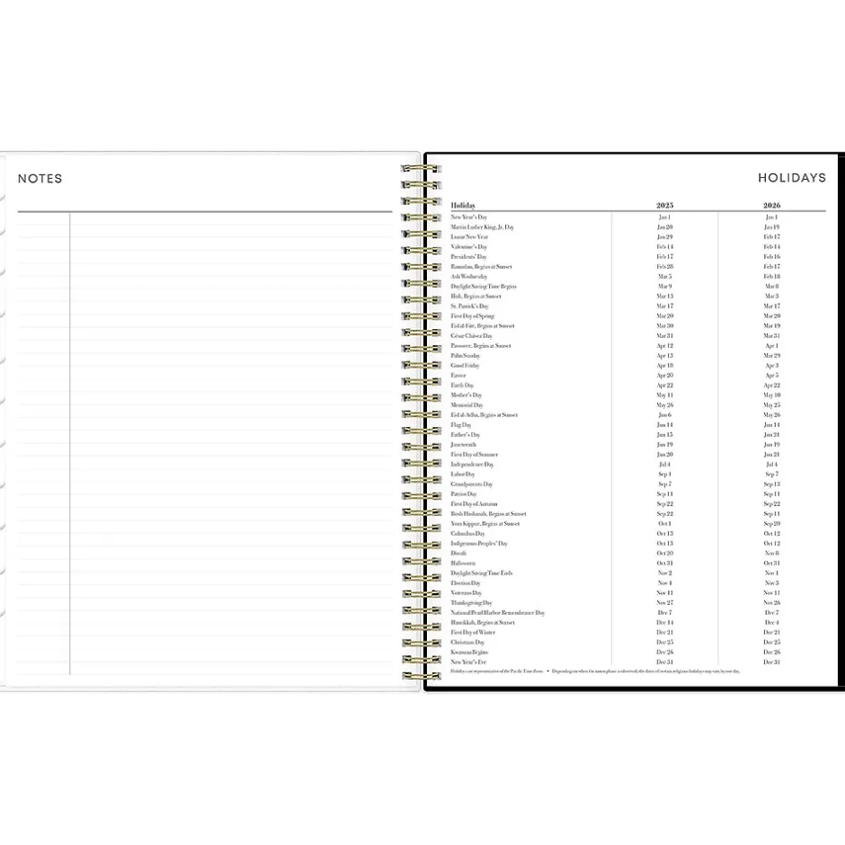 - Storage pocket, yearly overview, list of major holidays, and pages for your contacts, goals, important dates, and notes
