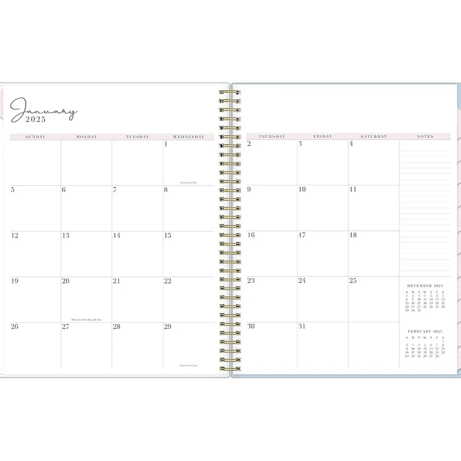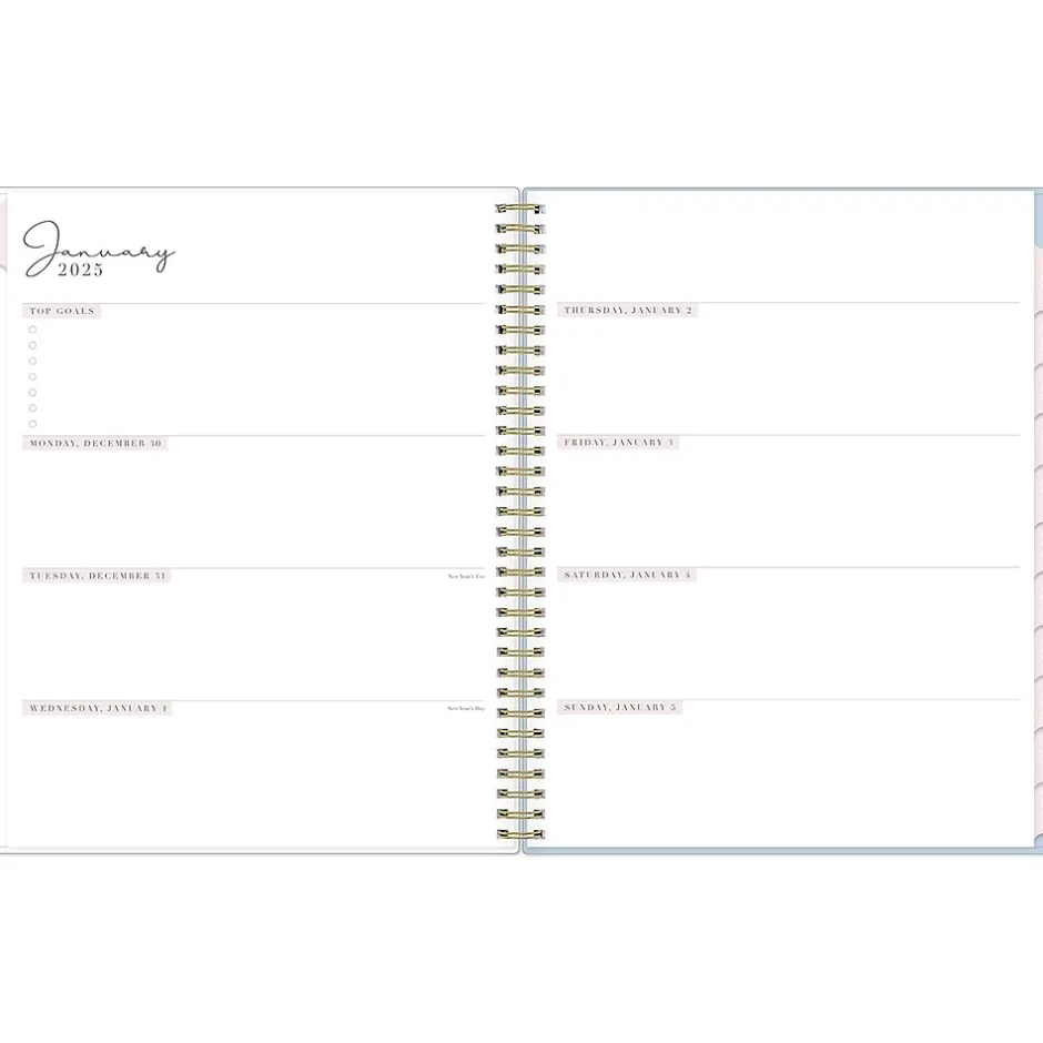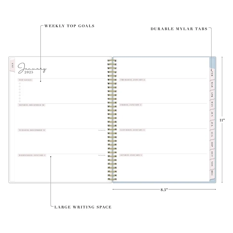 Organize your tasks with the 2025 Parcella planner from Rachel Parcell for Blue Sky. It includes stickers and a storage pocket and features unruled weekly layouts, tabbed monthly views, and notes pages to help you manage your schedule.