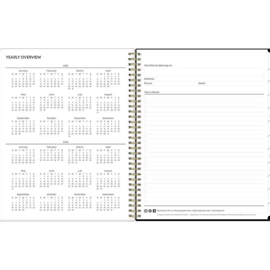 Organize your tasks and time with this Vonnie 2025 weekly and monthly planner from Blue Sky. Use the included storage pocket, ruled weekly layouts, tabbed monthly views, and notes pages to manage your schedule and achieve your goals.