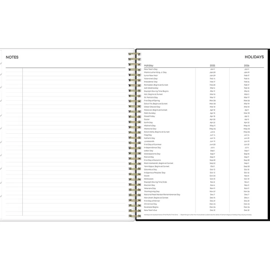 - Offers two-page weekly and monthly spreads with space for notes and quick reference calendars
