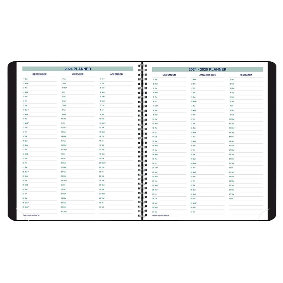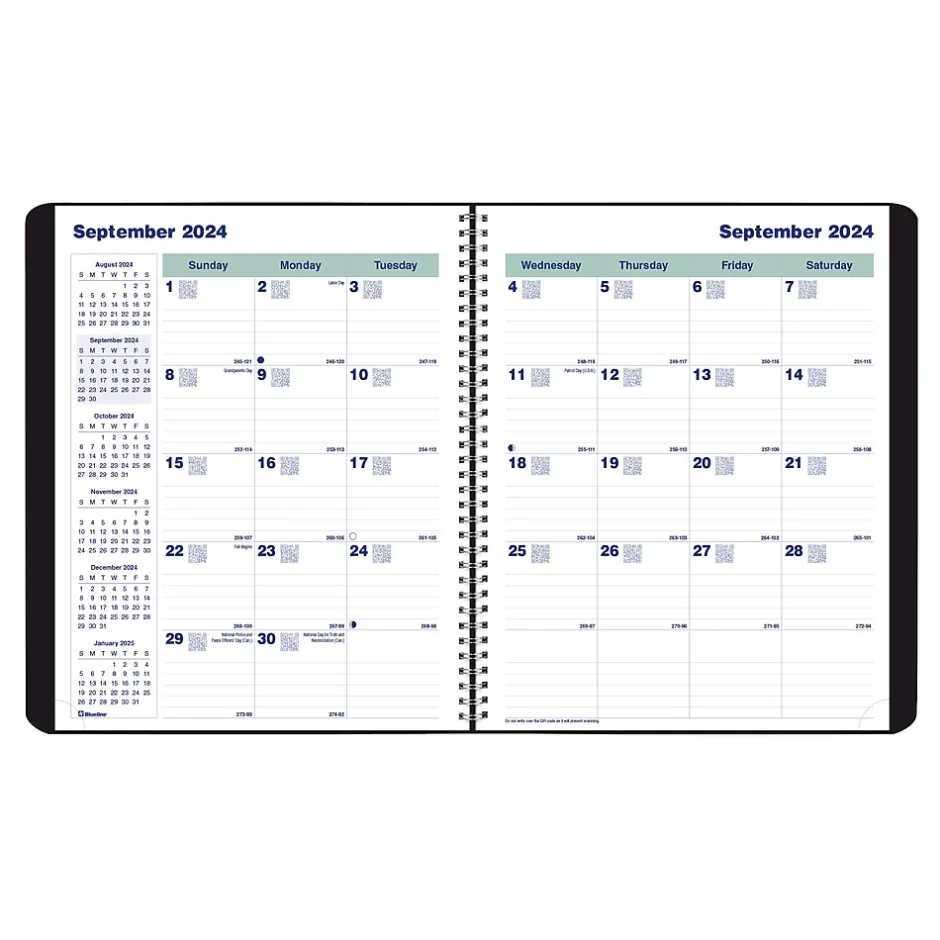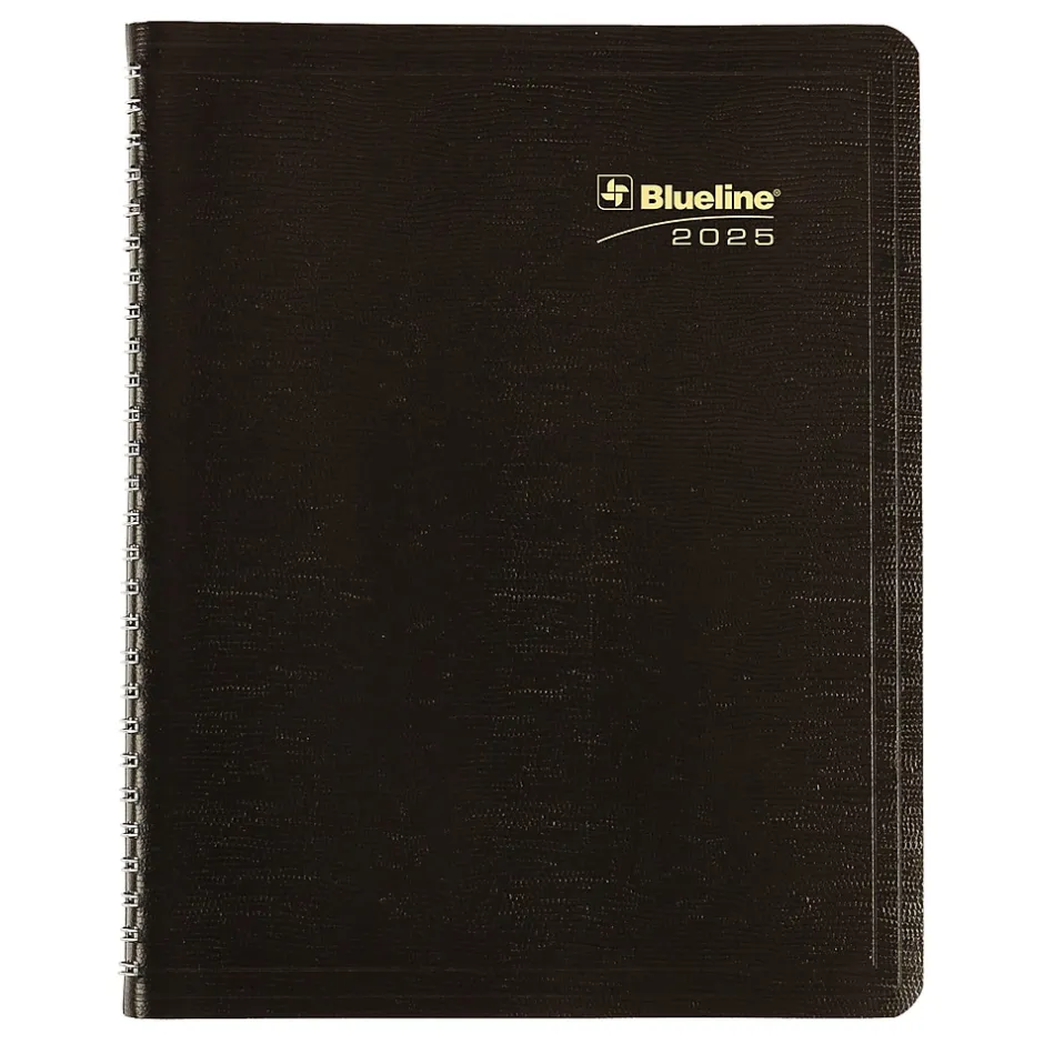 The future of planning is here with the Blueline Plan & Link 16-month monthly planner. Just plan, scan, click, and go for 16 months of planning from September 2024 to December 2025. Link your planner to your phone using the QR codes printed in the planner for seamless pen to technology synchronization. Write in your planner, scan the QR code printed on the date, take a picture, and set the date and reminder using the free Blueline Reminder app. The planner features a month to view format, with one ruled block per day. Contains reference calendars of past, current, and following months on each spread, as well as a daily countdown of days passed and days to come, holidays, and phases of the moon. Includes a telephone and address section. The durable lizard-like black cover is constructed with a flexible twin-wire binding for a flat and sturdy writing surface. Contains 50% postconsumer recycled materials. Forest Stewardship Council (FSC) certified to help promote environmentally appropriate, socially beneficial, and economically viable management of the world’s forests. Download the free Blueline Reminder app from the App Store and Google Play, powered by inkLink.
