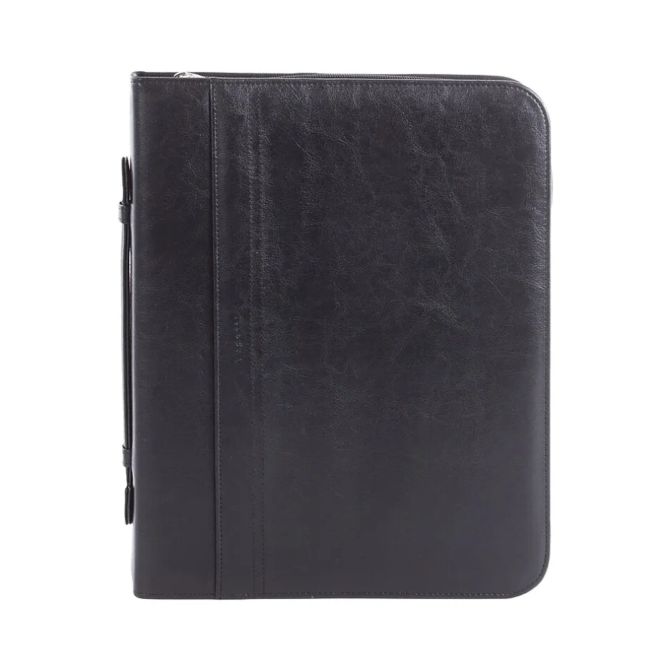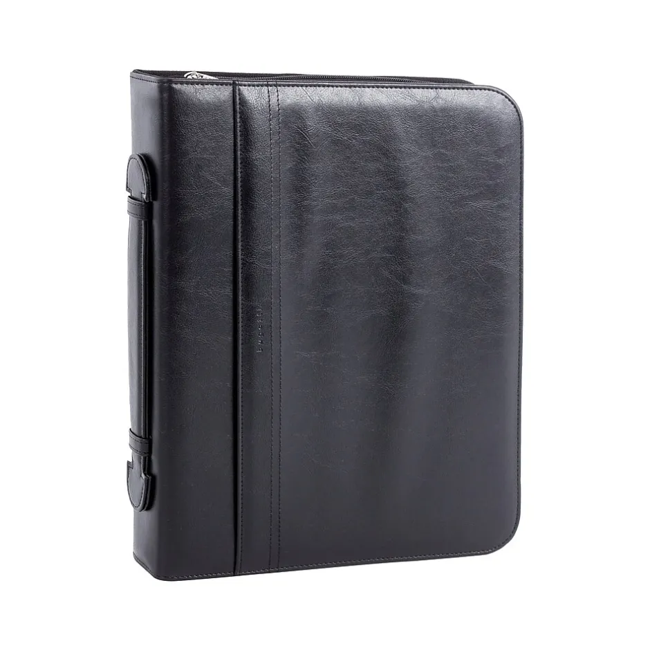 Bond Street vegan leather ring binder writing case is the perfect business accessory when you have to leave your desk. It can convert into a briefcase, with its reinforced handles. This elegant leather-like padfolio features a built-in organizer and a roomy document section. A letter-size notepad is included.