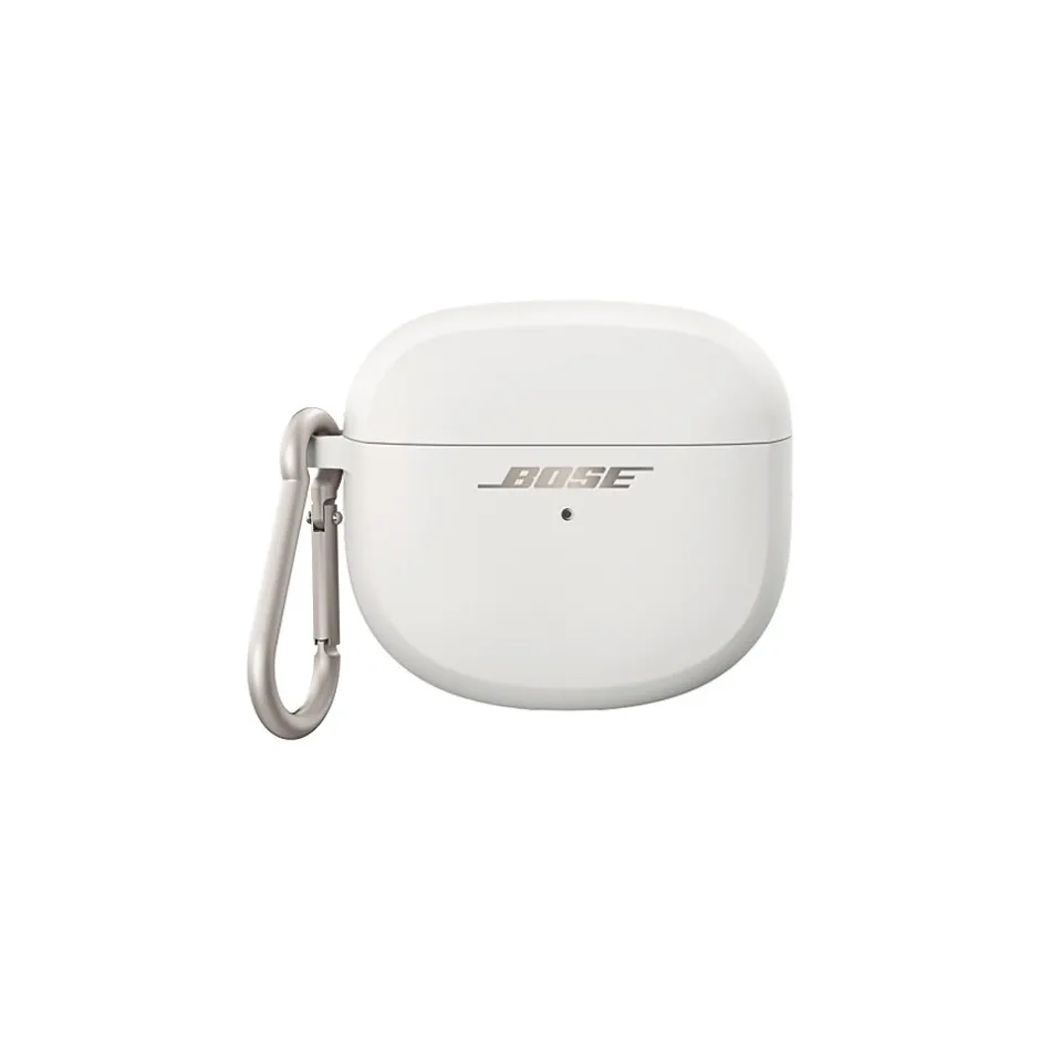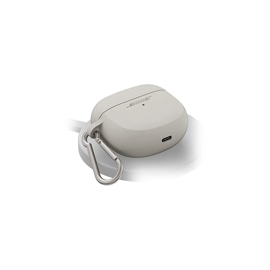 Power up wirelessly with the Bose Ultra Open Earbuds Wireless Charging Case Cover. Soft-touch silicone defends against scratches and scuffs. An aluminum carabiner clips to your bag or belt loop, so you can keep your earbuds close by. And the convenience of it all puts you in charge.