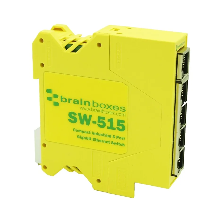 Brainboxes Industrial compact 5-port Gigabit Ethernet unmanaged switch is perfect factory floor, in vehicle and marine applications. Automatic detection of data transmission speed: 10/100/1000 Mbps. Dual input redundant power supply with wide voltage range means it can be powered from USB or on the 24V factory floor. Power terminal is removable with numbered pins for easy wiring. Power consumption is optimized based on the status of the link device. No software required.
