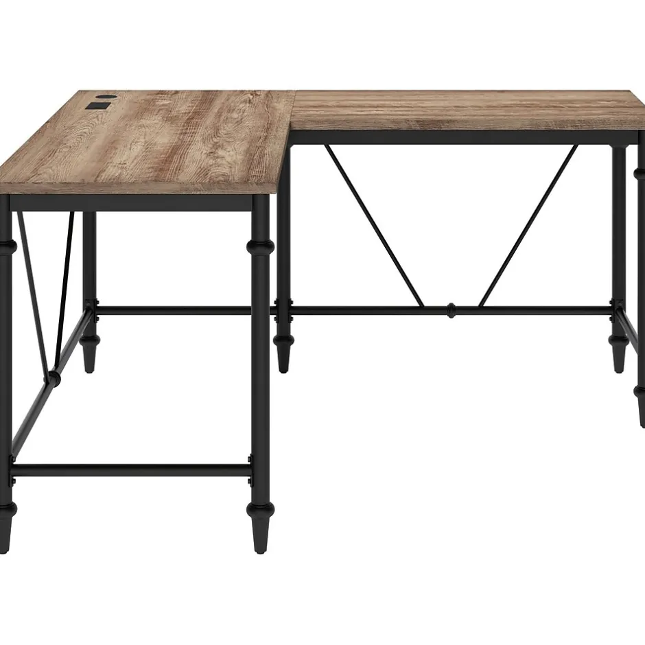 The Thomasville Furniture Breslyn L-shaped desk features a premium antimicrobial laminate work surface to reduce the growth of bacteria on the desk surface. In addition to a healthful work surface, the rustic transitional design offers ample space to keep you organized and productive. The work surface provides space for two monitors, a keyboard, a mouse, and other desktop necessities. The power strip will conveniently keep you connected to a power supply with two power outlets and two USB ports. The cord management grommet will also help keep your desktop neat and tidy.