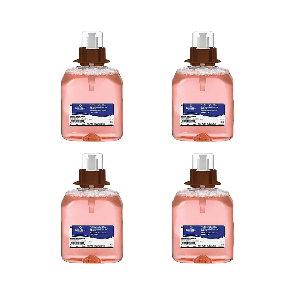 This high-capacity foaming hand soap refill helps reduce the spread of germs and makes maintaining restrooms easier. Large 1250mL refill holds up to 1500 uses, more than five standard 8 oz. soap bottles. Soap needs to be changed out and ordered less frequently than with countertop bottles that clutter sink areas and can disappear. This Brighton Professional foam soap rinses cleaner than liquid soap without leaving drips or messes in the sink, so restrooms stay cleaner.