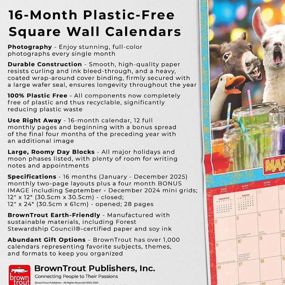 - Abundant Gift Options – BrownTrout has over 1,000 calendars representing favorite subjects, themes, and formats to keep you organized