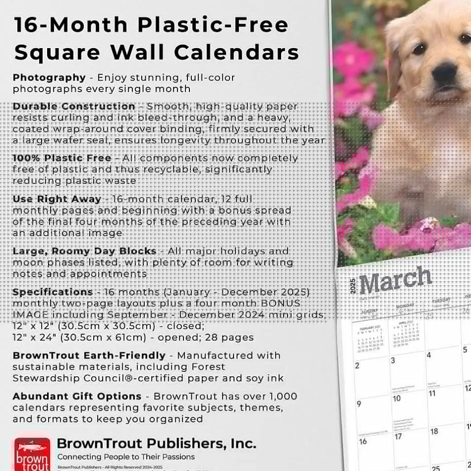 - Abundant Gift Options – BrownTrout has over 1,000 calendars representing favorite subjects, themes, and formats to keep you organized