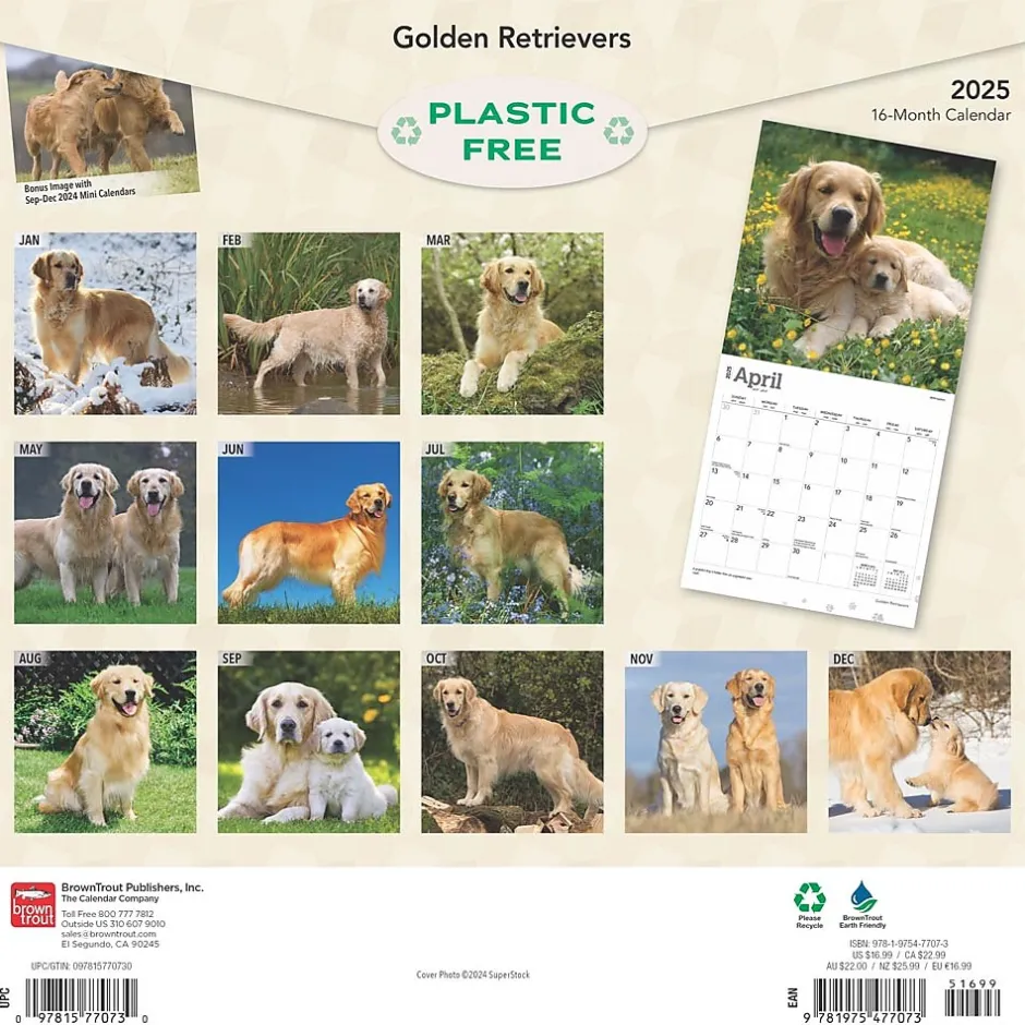 The beautiful Golden Retriever is one of the world’s favorite family companion dogs. It’s no mystery why. Goldens are trustworthy, devoted, and loyal. They are intelligent, friendly, playful, and gentle. These dogs fill a home with love and joy. This calendar contains a wonderful collection of photographs sure to please any Golden lover.