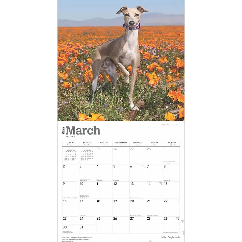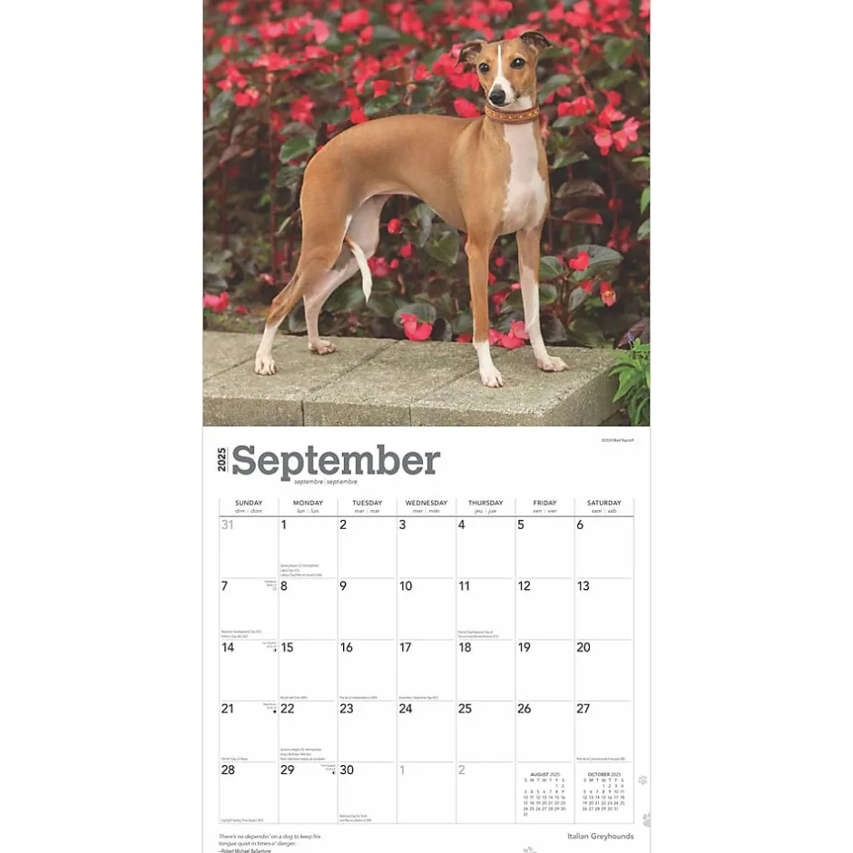 Once a favorite among European nobles, the Italian Greyhound is a sleek and active dog. Though they look delicate, these dogs, the smallest of the sighthounds, are remarkably sturdy and require daily exercise. Sweet, gentle, and loving, they make loyal companions. Celebrate this amazing breed with this Italian Greyhounds calendar.