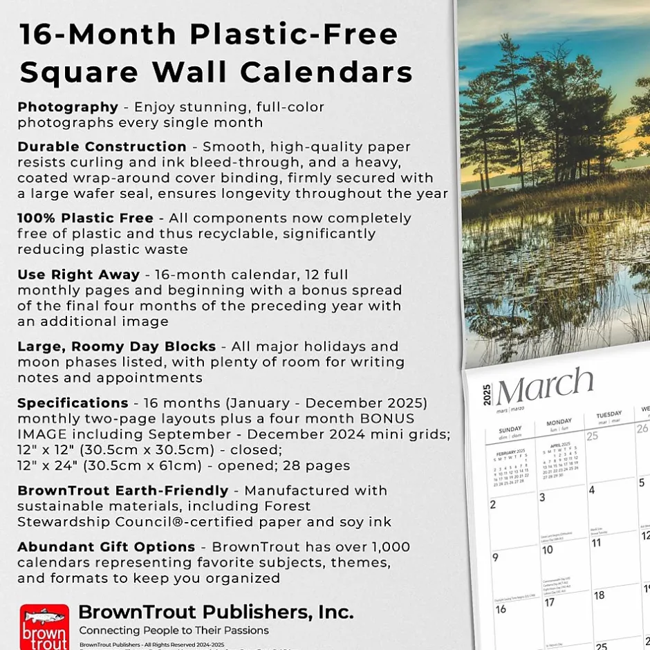 - BrownTrout Earth-Friendly – Manufactured with sustainable materials, including Forest Stewardship Council®-certified paper and soy ink