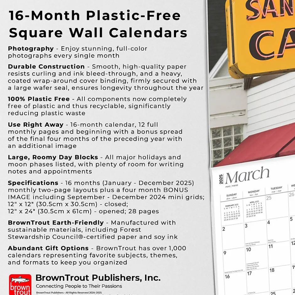 - Abundant Gift Options – BrownTrout has over 1,000 calendars representing favorite subjects, themes, and formats to keep you organized